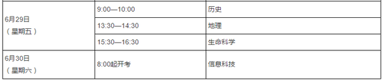 合格性考试科目时间安排: