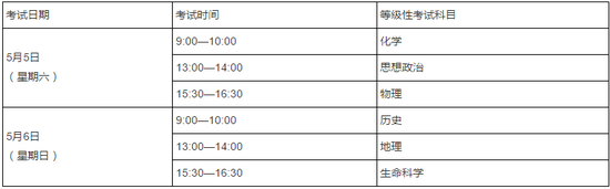 等级性考试科目时间安排: