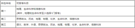 高中在籍学生可报考的合格性考试科目如下表所示: