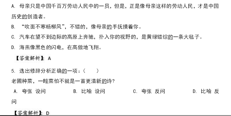 天津小升初语文91天练习及答案:第69练(修辞1)
