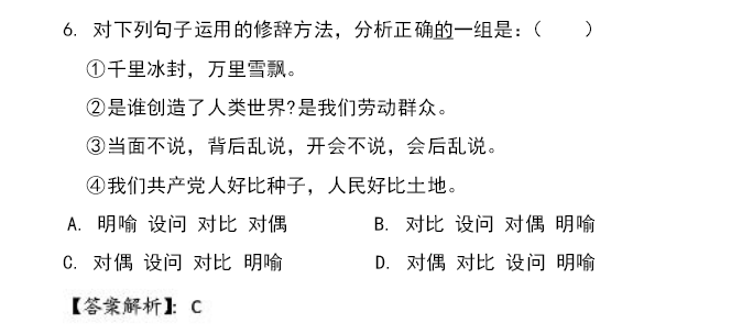 天津小升初语文91天练习及答案:第69练(修辞1)_小升初练习题