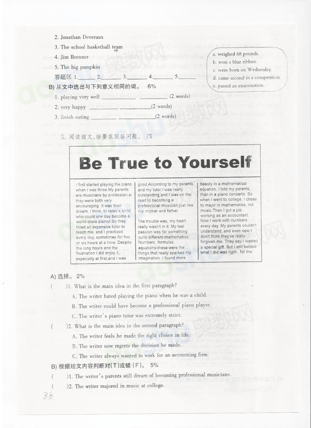 2007小外小卷仿真试题答案
