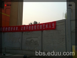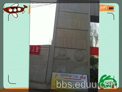 学校大门侧面的艺术展示墙,墙体镌刻着各种典故和教育事件,展现着艺术的意义。