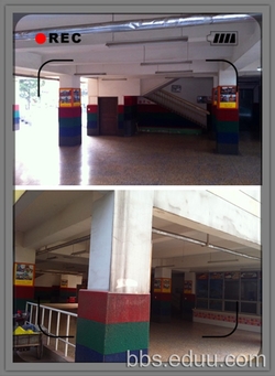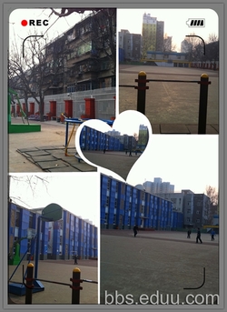 蓝色的是教学楼,很宽阔的操场,放学了不愿离校的孩子还在操场做运动。
