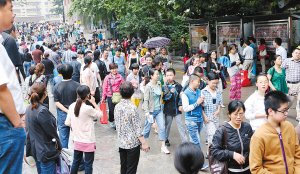 下考后家长进校接孩子 交流考试感受