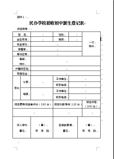 民办初中报名表
