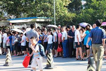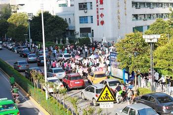 今日一大早7时起就有家长及考生陆陆续续的赶往高新第一中学门口等候,有的静心等待,有的显些焦急,约07:30时学校门口已经被学生和家长围观,07:45时左右学生和家长也已经有序的排好了队,期待着进入学校能尽快领取成绩单。