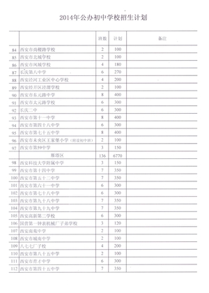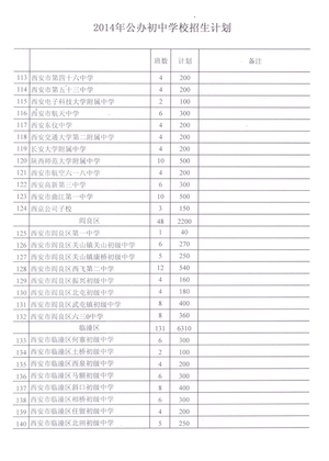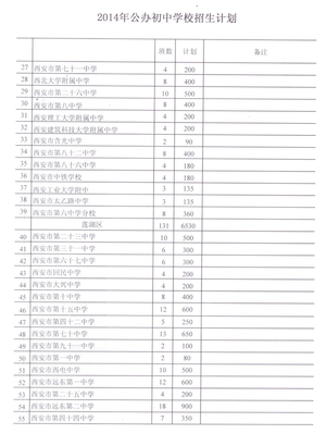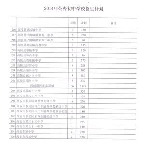 2019年西安市公办初中学校招生计划