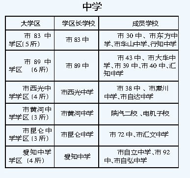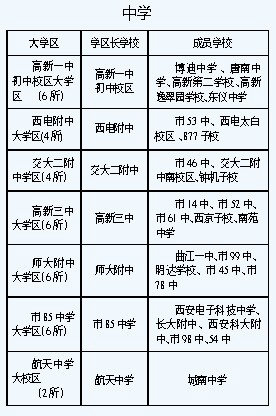 雁塔区共设立8个小学大学区和7个中学大学区,虽然大学区数量不多,但紧凑型大学区所占比例在各试点区中最大,达到3个。其中小学紧凑型大学区两个,学区长学校分别为大雁塔小学和翠华路小学,中学紧凑大学区1个,学区长学校为航天中学。
