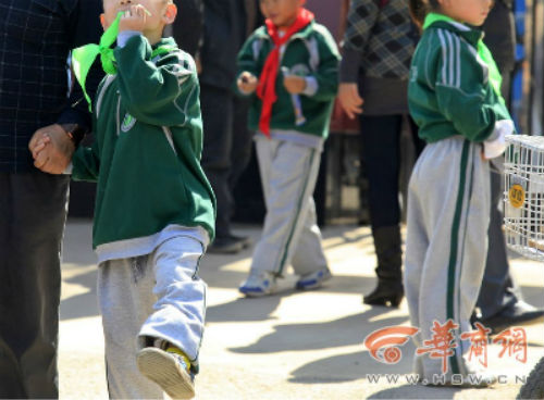 你学习不好,戴绿领巾,我才是真正的红领巾……”西安市未央区第一实验小学门口,两个放学的孩子嬉闹起来,来接佩戴绿领巾孩子的家长的表情尴尬。