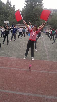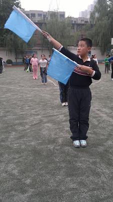 大广播里传出阵阵成龙有气势的《少年强》歌曲伴奏,同学们紧跟韵律节奏,上下挥舞红、黄、蓝、绿四色小旗,气势庞大、场面壮观,那精神真叫棒,那气势威震天,真正彰显了“少年强则国强”的新时代少年儿童风采,成为大操场上一道亮丽的风景线!