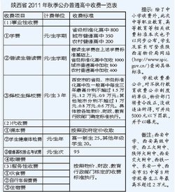 在择校费方面,具体标准为西安市的省级、市级标准化高中及一般高中每生三年最高分别不超过1.5万元、1.2万元、0.9万元;其他地市分别不超过1万元、0.8万元、0.6万元。具体按各地物价、财政、教育行政部门确定标准执行。西安中学、西安高级中学、西工大附中、陕师大附中、西安交大附中、西铁一中、长安一中、西安市83中等8所学校每生三年最高不超过2万元。