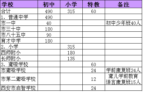 西安部分中小学2011招生计划