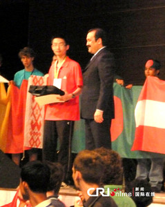 本届国际奥林匹克数学竞赛颁奖仪式13日在阿斯塔纳独立宫隆重举行。哈萨克斯坦政府总理马西莫夫在致辞中热烈祝贺中国队取得最优成绩,并亲自为聂子佩颁发了金牌和奖品。中国驻哈萨克斯坦大使周力出席颁奖仪式并祝贺中国选手取得佳绩。