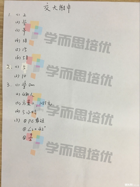 【导语】2019年西安528小升初综合测评今天开启,为了方便各位宝贝第一时间对答案,预估自己的成绩,西安奥数网现在分享交大附中528真题及答案解析给大家,宝贝们快来对答案吧,预祝所有宝贝都取得理想成绩。