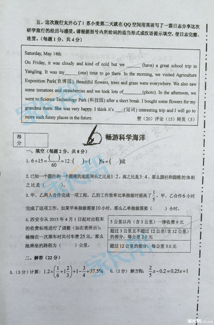 【导语】2019年西安528小升初综合测评今天开启,为了方便各位宝贝第一时间对答案,预估自己的成绩,西安奥数网现在分享尊德中学528真题及答案解析给大家,宝贝们快来对答案吧,预祝所有宝贝都取得理想成绩。