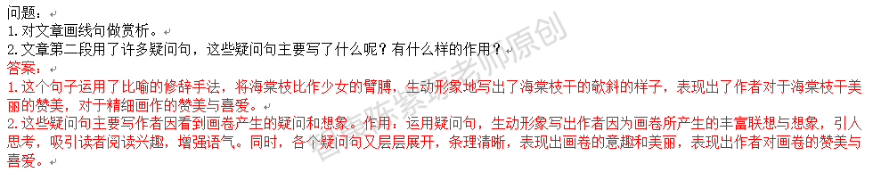 阅读题要答好还是要回到阅读上,为了帮助孩子提高阅读水平,小编会每天选择一篇篇幅短的小文章来让孩子阅读。今天小编选取《“鸟朦胧,月朦胧,帘外海棠红”》来做相关练习题。