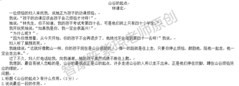 阅读题要答好还是要回到阅读上,为了帮助孩子提高阅读水平,小编会每天选择一篇篇幅短的小文章来让孩子阅读。今天小编选取《山谷的起点》来做相关练习题。
