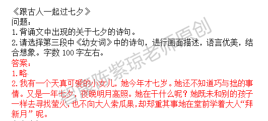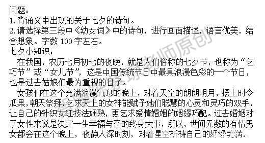 阅读题要答好还是要回到阅读上,为了帮助孩子提高阅读水平,小编会每天选择一篇篇幅短的小文章来让孩子阅读。今天小编选取《跟古人一起过七夕》来做相关练习题。