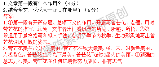 阅读题要答好还是要回到阅读上,为了帮助孩子提高阅读水平,小编会每天选择一篇篇幅短的小文章来让孩子阅读。今天小编选取林清玄的《满山菅芒花》来做相关练习题。