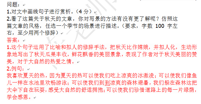 阅读题要答好还是要回到阅读上,为了帮助孩子提高阅读水平,小编会每天选择一篇篇幅短的小文章来让孩子阅读。今天小编选取《读秋》来做相关训练。