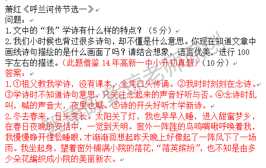 今天小编选取萧红《呼兰河传节选1》练习题来做相关训练(练习题借鉴14年高新一中真题)。