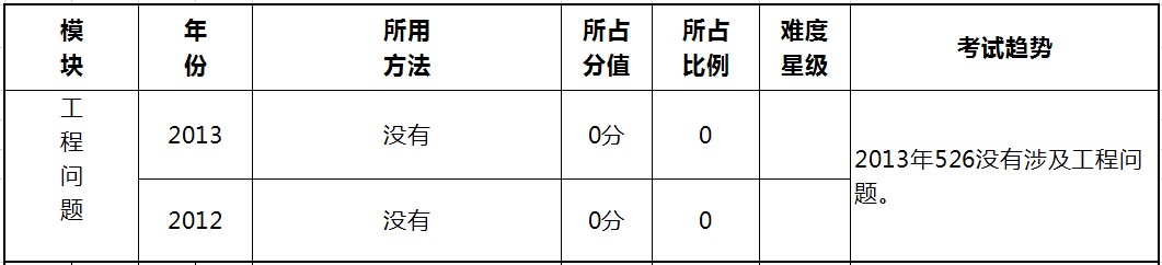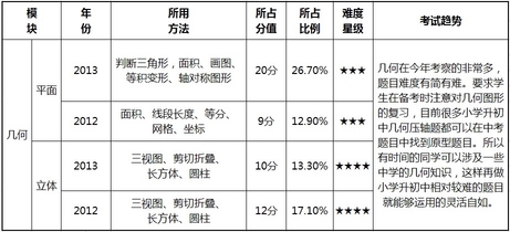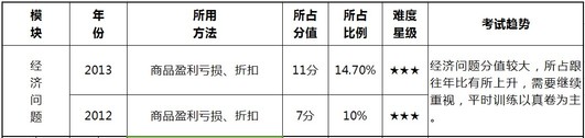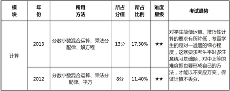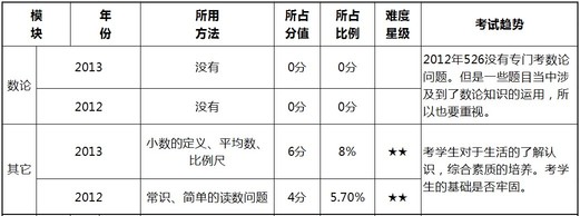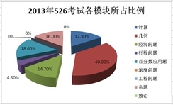 2012年526试题数学满分为70分,占整套试卷的58.3%;2013年536试题数学满分为75分,占整套试卷的62.5%。下面看具体的题型所占的比值和考试趋势。