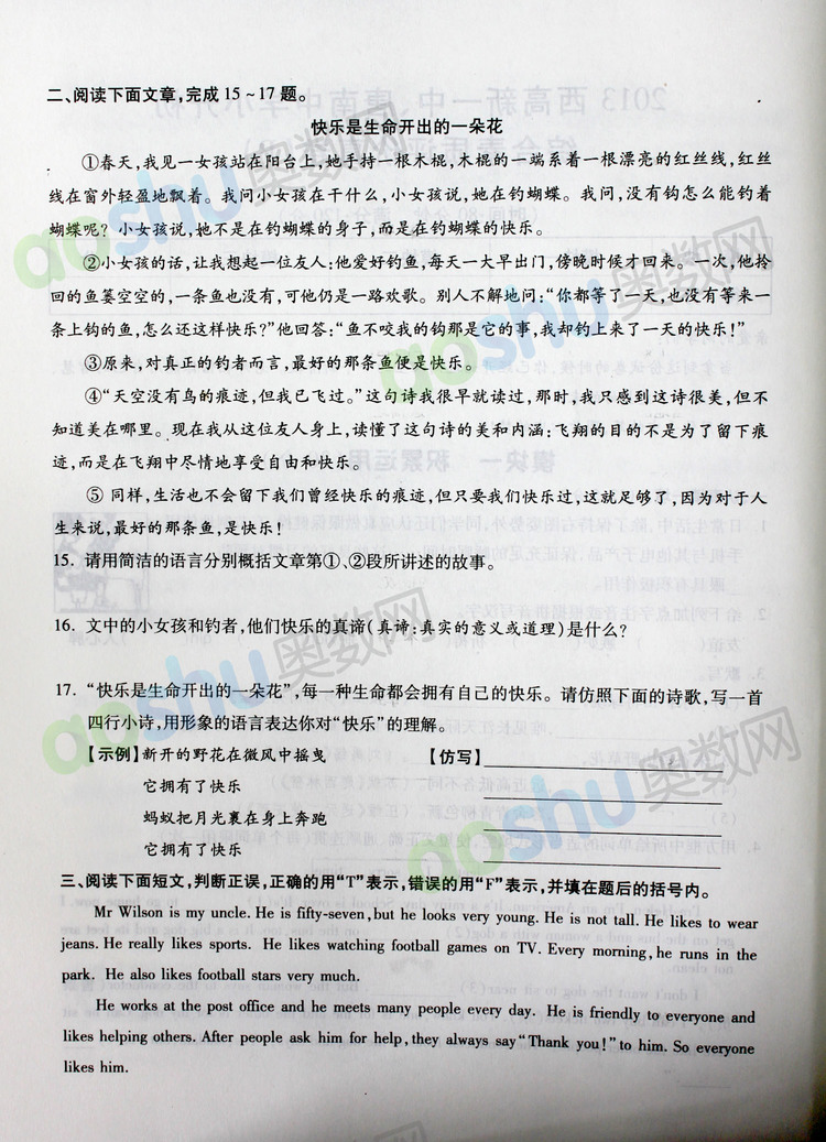 西安奥数网10月11日 2013高新一中、唐南中学小升初综合素质评价真卷B高清版本,供2019小升初家长和孩子下载查看。