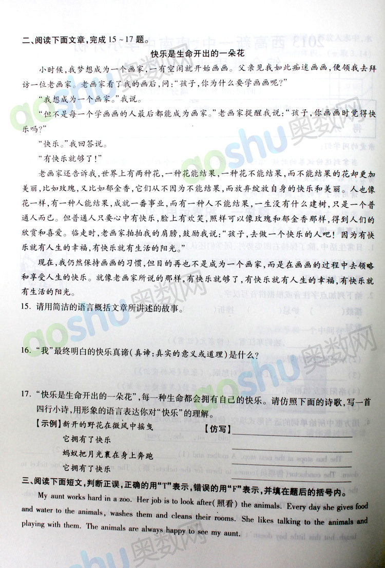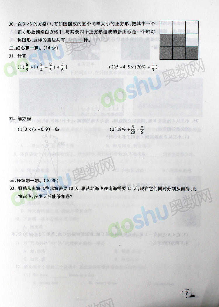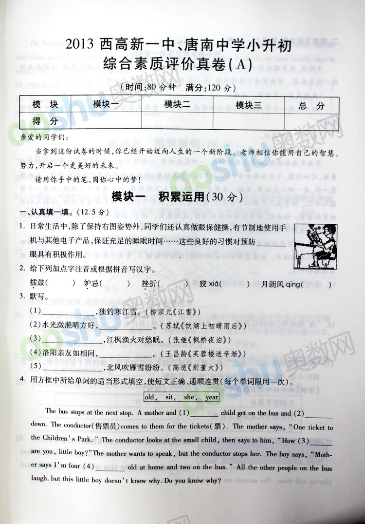 西安奥数网10月11日 2013高新一中、唐南中学小升初综合素质评价真卷A高清版本,供2019小升初家长和孩子下载查看。