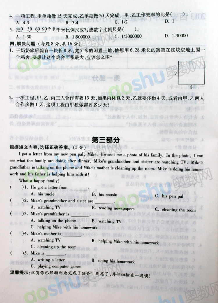 西安奥数网10月17日 2013西安三中(尊德中学)小升初综合素质评价真卷高清版本,供2019小升初家长和孩子下载查看。