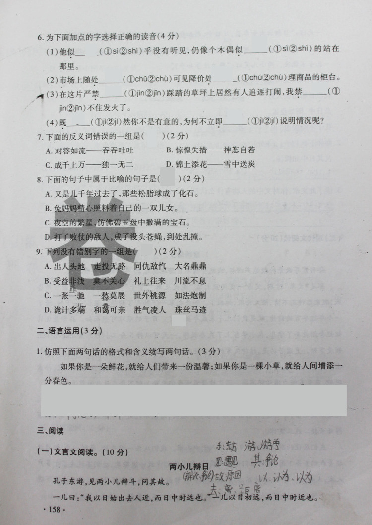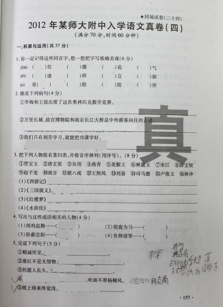 2012年师大附中入学语文真卷(四)