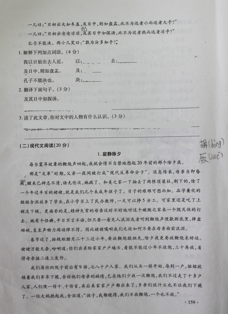 | 2012年师大附中入学语文真卷(四) |