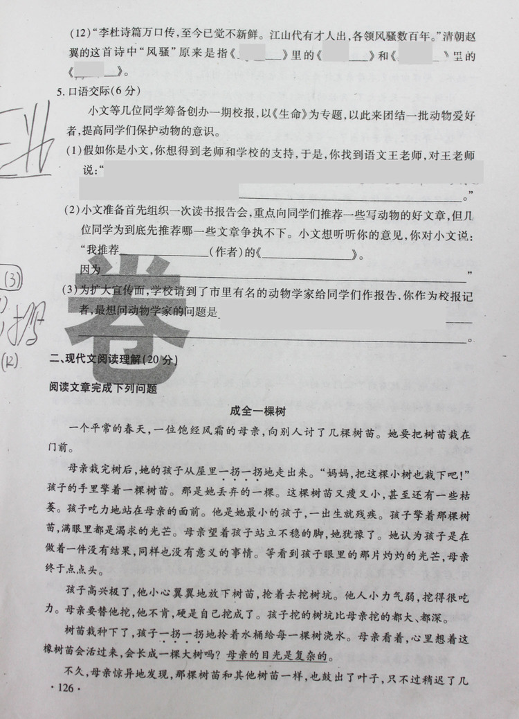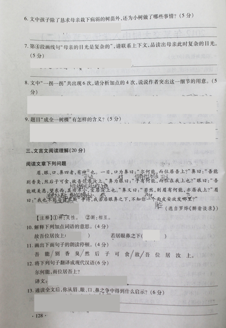 | 2012年交大附中入学语文真卷(二) |