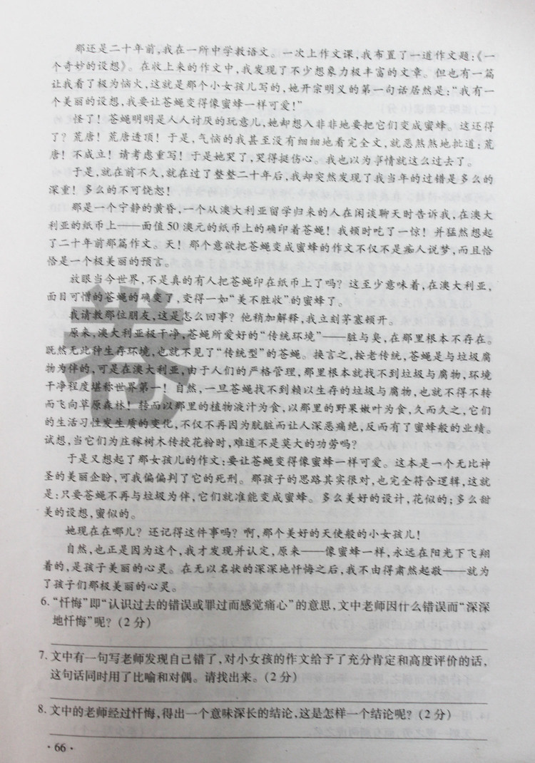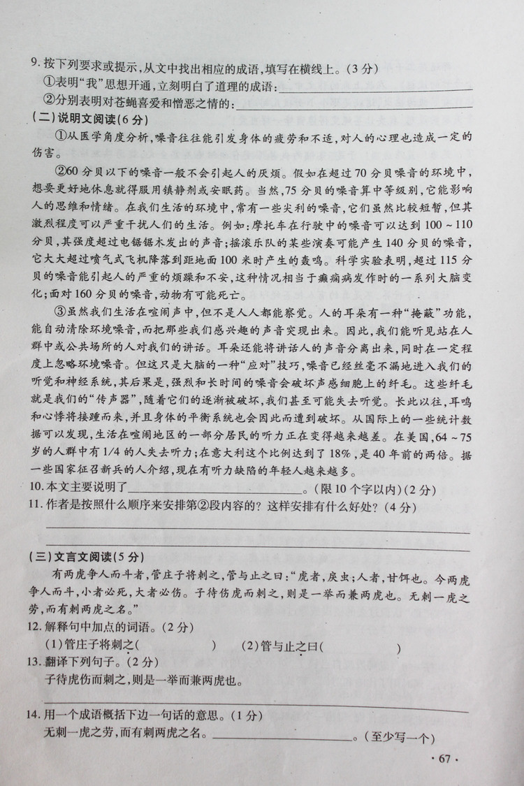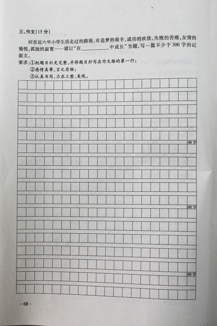 2012年高新一中小升初入学语文真卷(二)