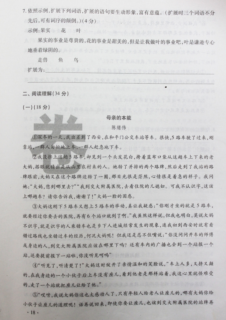 西安奥数网9月11日 小升初做真卷是一个必要的过程。充分了解目标校的命题趋势,才能更有把握。小编将2012年西工大附中的真题进行了整理。2012年西工大附中小升初入学考试语文真卷共六套。本篇为第五套。