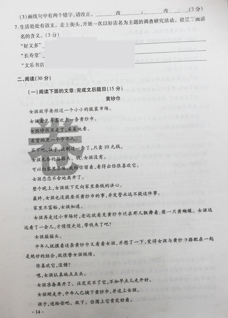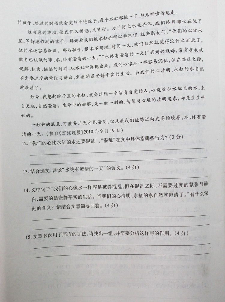 2008年工大附中入学语文真卷汇总