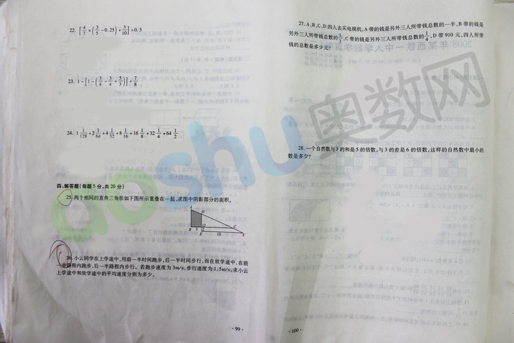 西安奥数网9月3日 小升初做真卷是一个必要的过程。充分了解目标校的命题趋势,才能更有把握。小编将2008年铁一中的真题进行了整理。2008年铁一中小升初入学考试数学真卷共三套。本套为第二套。如果有任何疑问,都可以留言给我们,或进入e度论坛-小升初版块咨询我们的老师。