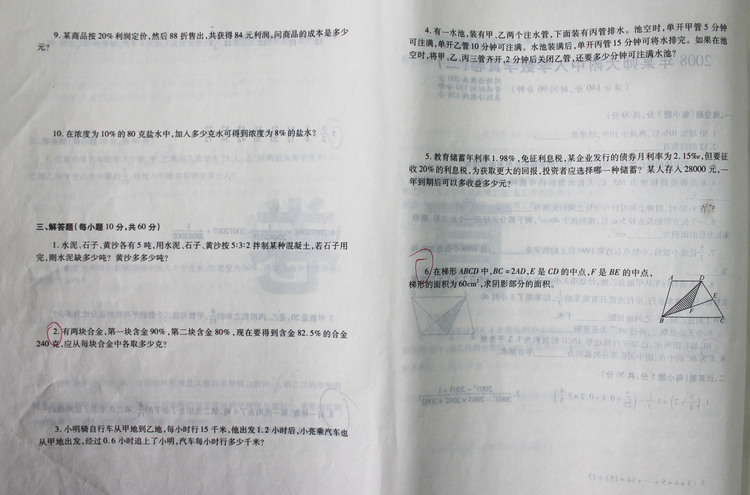 2008年师大附中入学数学真卷(二)