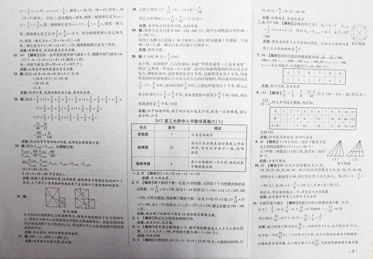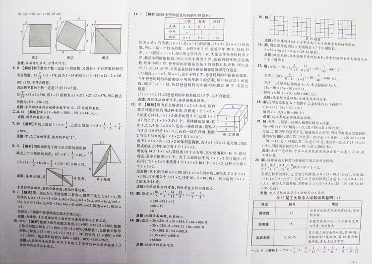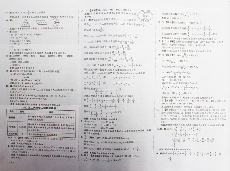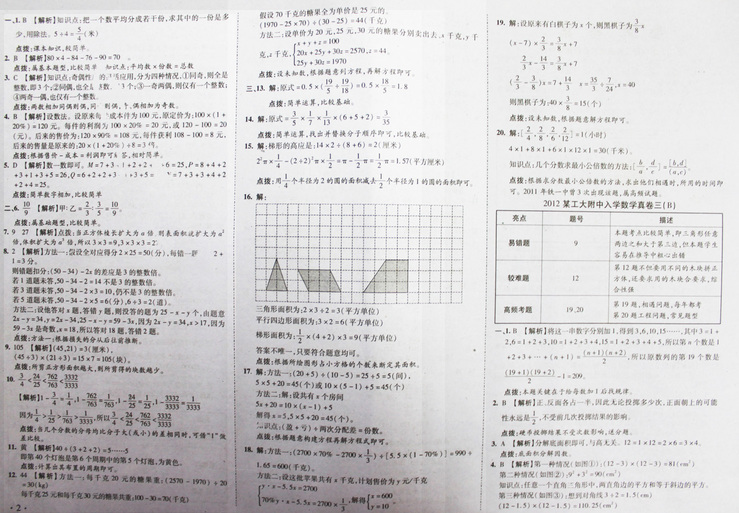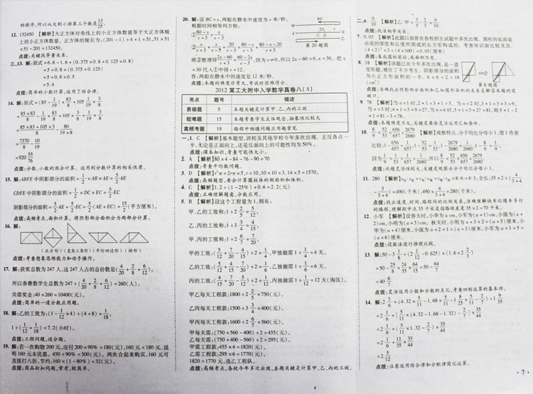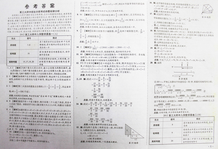 西安奥数网8月28日 这是2012年西工大附中入学数学真卷1-9参考答案,供小升初的家长和孩子参考。