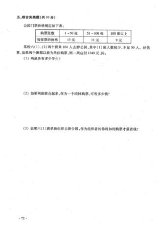 2012年高新一中入学数学真卷(四)
