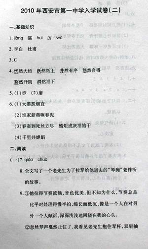 2011年西安市一中(益新中学)小升初入学语文真卷(二)