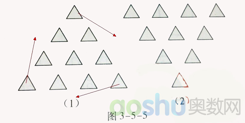 题4:历史上最有名的军师诸葛孔明,率精兵与司马仲达对阵,孔明一挥羽扇,军阵瞬时由图3-5-5(1)变为图3-5-5(2),其实质移动了其中三个骑兵而已,你知道其中的奥秘吗?