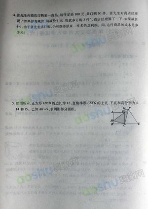 西安奥数网12月19日 小升初做真卷是一个必要的过程。充分了解目标校的命题趋势,才能更有把握。小编将2011年西安交大附中的真题进行了整理。2011年交大附中小升初入学考试数学真卷共六套,复试卷一套。本篇为第六套。