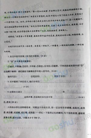 西安奥数网11月29日 小升初做真卷是一个必要的过程。充分了解目标校的命题趋势,才能更有把握。小编将2011年西安小升初中陕师大的入学真题进行了整理。2011年陕师大附中小升初入学考试语文真卷共五套。本篇为第四套。