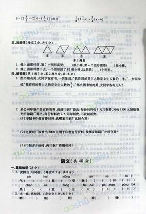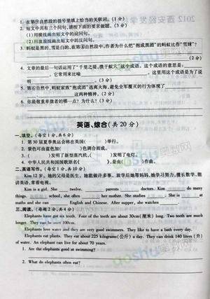5.26真题:西安经发学校2012小升初综合素质评价真卷
