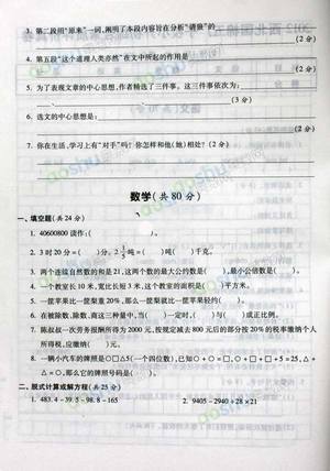 2012年5.26小升初综合素质评价真题汇总