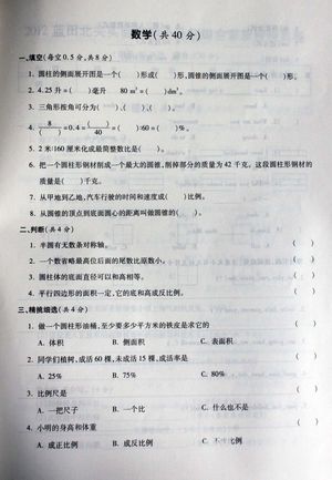 2012年5.26小升初综合素质评价真题汇总