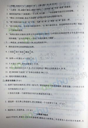 西安奥数网 5.26综合素质评价考试,是2012年西安小升初“大学区”新政的产物。通过5.26考试,孩子增加了一次靠实力考入名校的机会。 奥数班的考试不再是进入名校的唯一通道。因此,2013的备考家长就必须重视5.26综合素质评价考试。因为题型新颖、禁考奥数、3科综合等因 素,5.26的考题和往年各校的真题大不相同。西安奥数网收集了2012年西安小升初5.26综合素质评价的真题,供备考家长们学习参考。