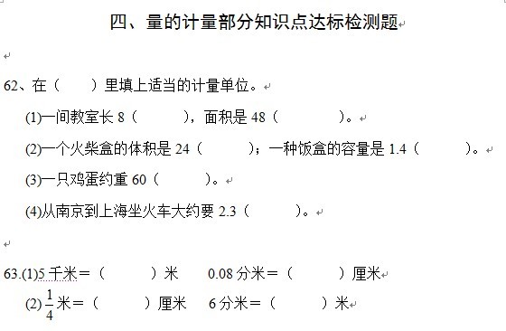 量的计量部分知识点达标检测
