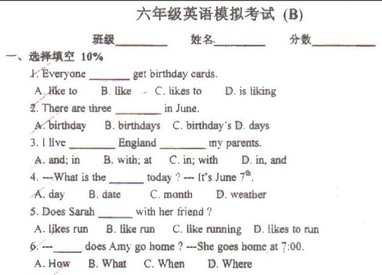 高新一小英语摸底试卷